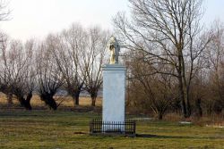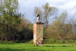 Na łące pomiędzy rzeką Brok i jej starorzeczem stoi w okolicy mostu wysoki cokół, na którym znajduje się piaskowcowa figura św. Jana Nepomucena (na mapie). Przed murowanym z czerwonej cegły pobielonym cokołem leży granitowy głaz z datą 1822, wykutą w prostokątnym obramieniu. Rok ten Katalog zabytków sztuki w Polsce uznaje za datę powstania figury[1].