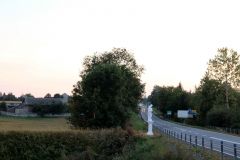 Na granicy województwa małopolskiego i świętokrzyskiego stoi przy szosie kamienna, bielona figura św. Jana Nepomucena. Rzeźba o barokowych cechach chroni miejscowość, zgodnie z zadaniami świętego Jana, przed żywiołem wody w postaci rzeki Nidzicy, która 2 km dalej uchodzi do Wisły. Figura ustawiona jest przed mostem przy wale przeciwpowodziowym. Jest bielona, jak większość figur na Ponidziu.