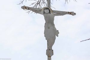 Metalowy krzyż z blaszanym Chrystusem w Niedamirowie