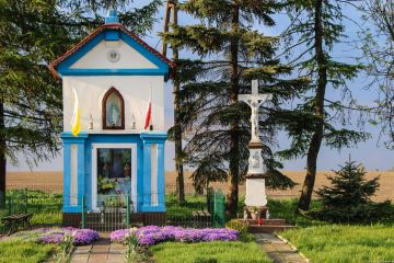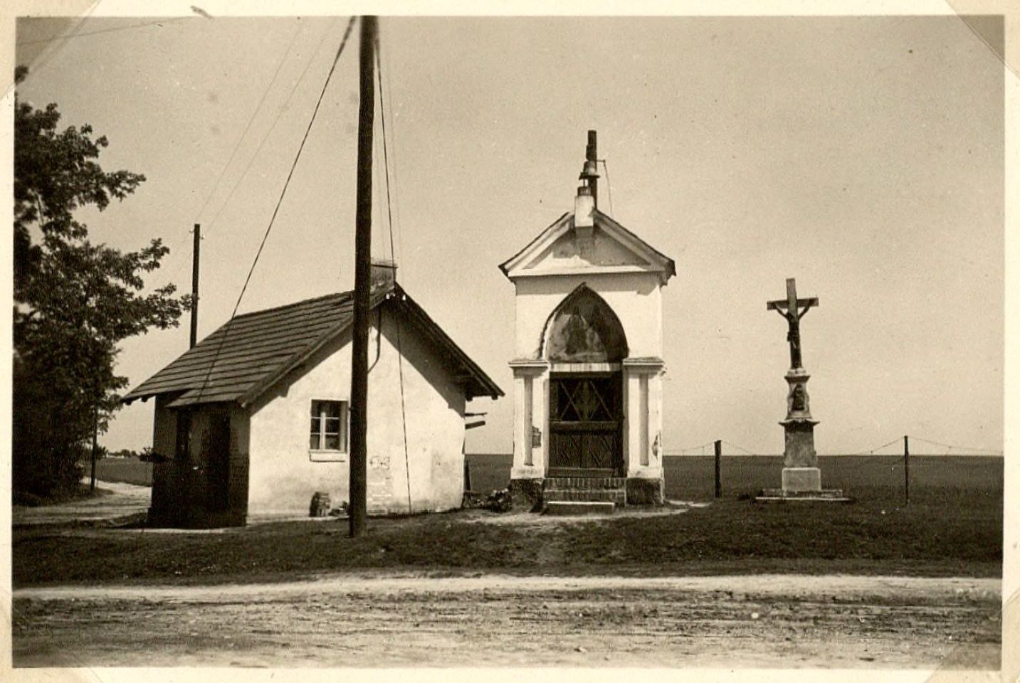 kapliczka i krzyż w Dzierżkowicach gm. Branice pow. opolski, fot. ok 1940.