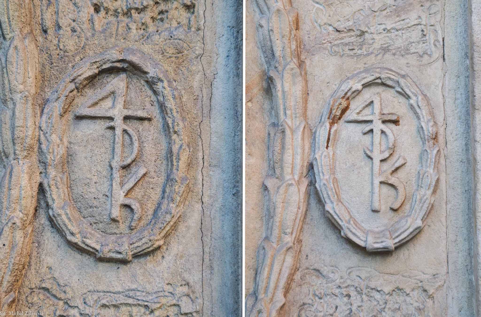 Gmerk (Hausmarke) N.N. sukiennika na płycie pamiątkowej cechu sukienników i jej kopii (1713) Fot. 2019.