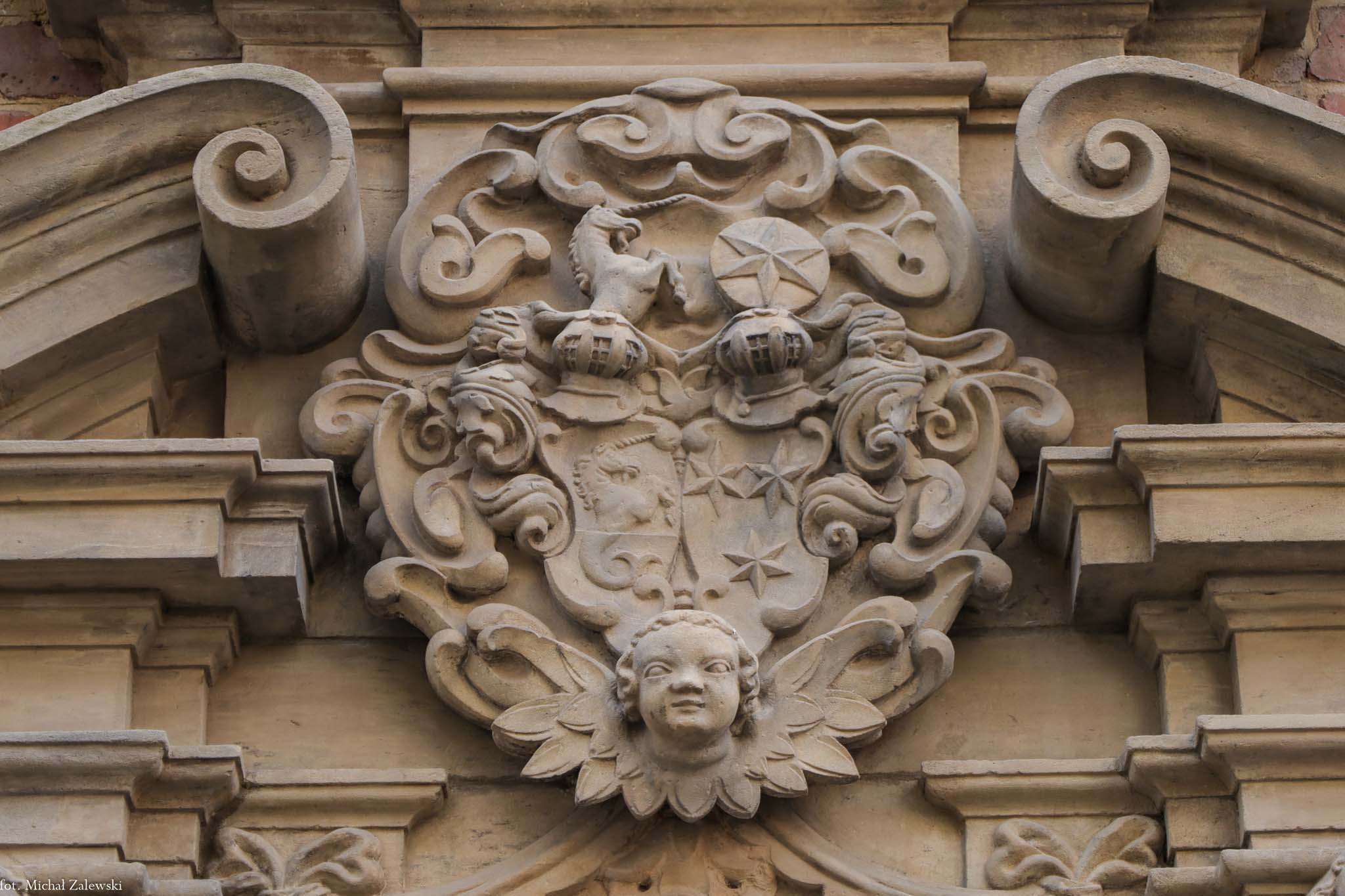 Herb na epitafium związanym z grobowcem rodziny Nimptsch. Północna fasada fary elżbietańskiej we Wrocławiu.