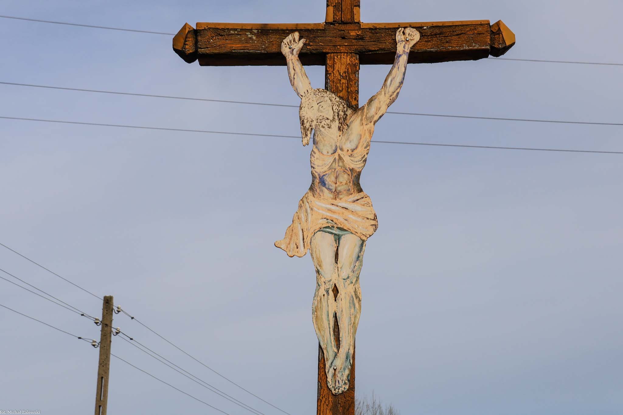Krzyż z Jezusem Chrystusem z blachy, Osiek (Ossig) pow. średzki, woj. dolnośląskie (fot. 2025).