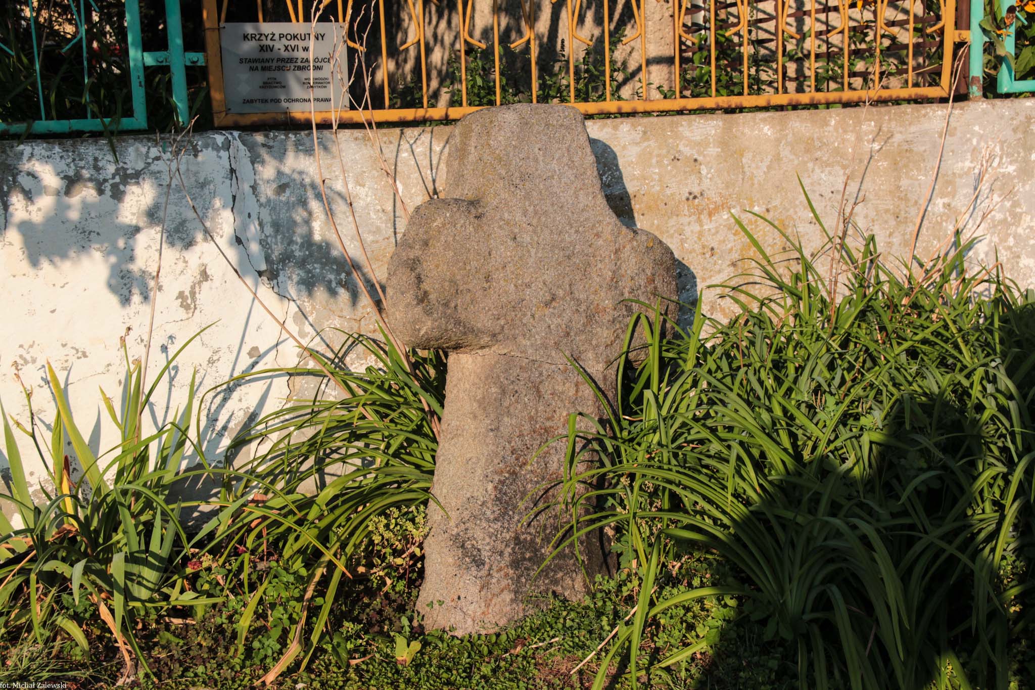 Granitowy krzyż na skarpie przy posesji 62. 50°23'16.6"N 17°21'02.6"E.