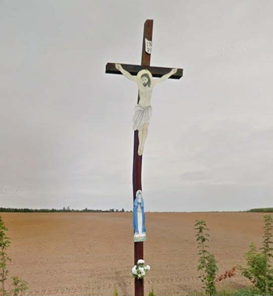 Plik na bazie zdjęcia z 2013 r. w Google Maps. W 2023 r. nie ma już Chrystusa z blachy.