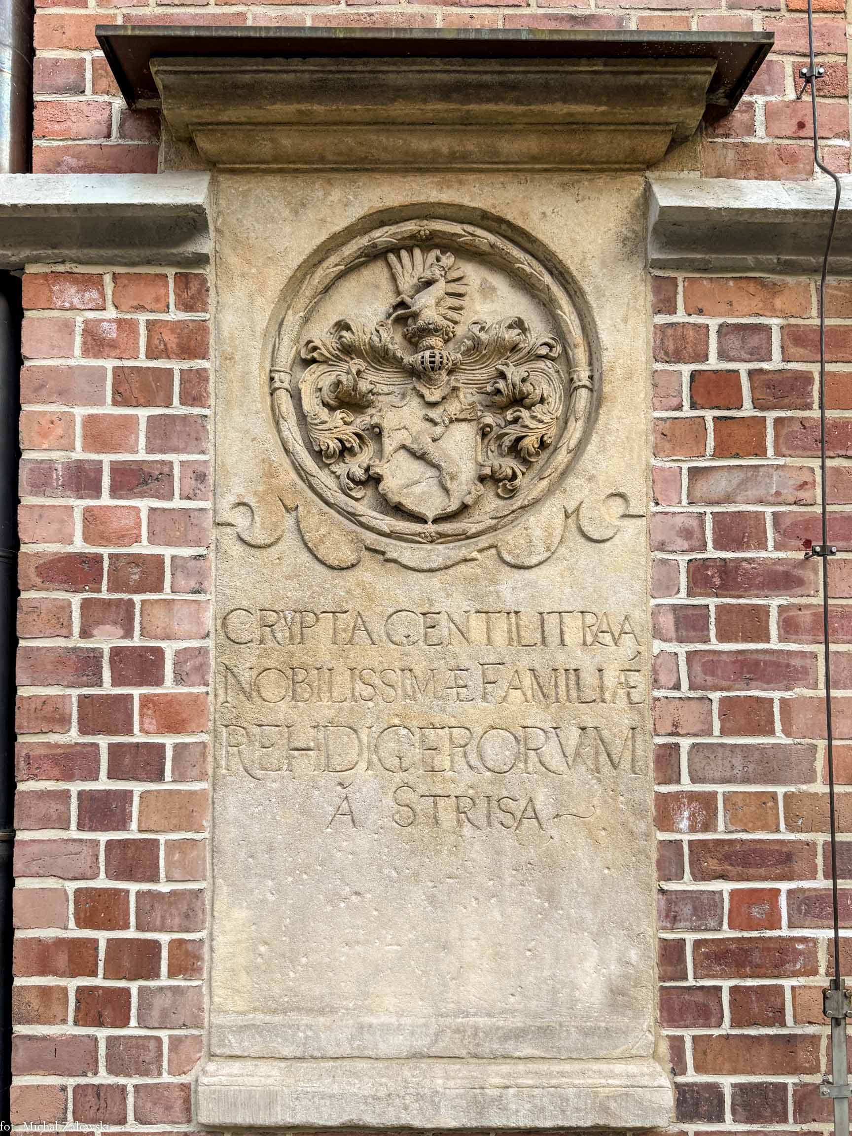Płyta krypty Rehdigerów na zewnętrznej ścianie kaplicy Rehdigerów. Fara elżbietańska. Fot. 2025.