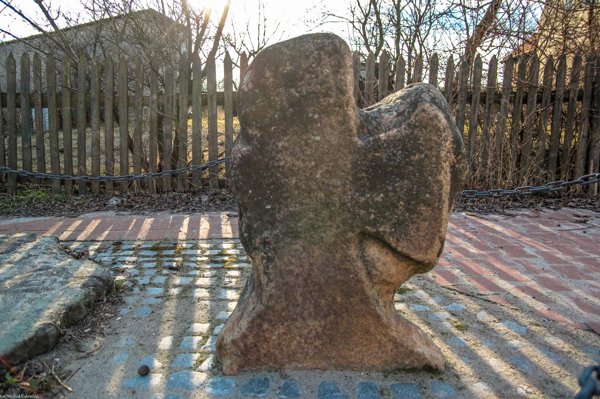 Granitowy krzyż bez jednego ramienia z dolną aureolą. Stoi po zachodniej stronie drogi do Sobótki (ul. Wrocławska) koło posesji 62, przy pręgierzu. 50°55'35.0"N 16°45'29.7"E.