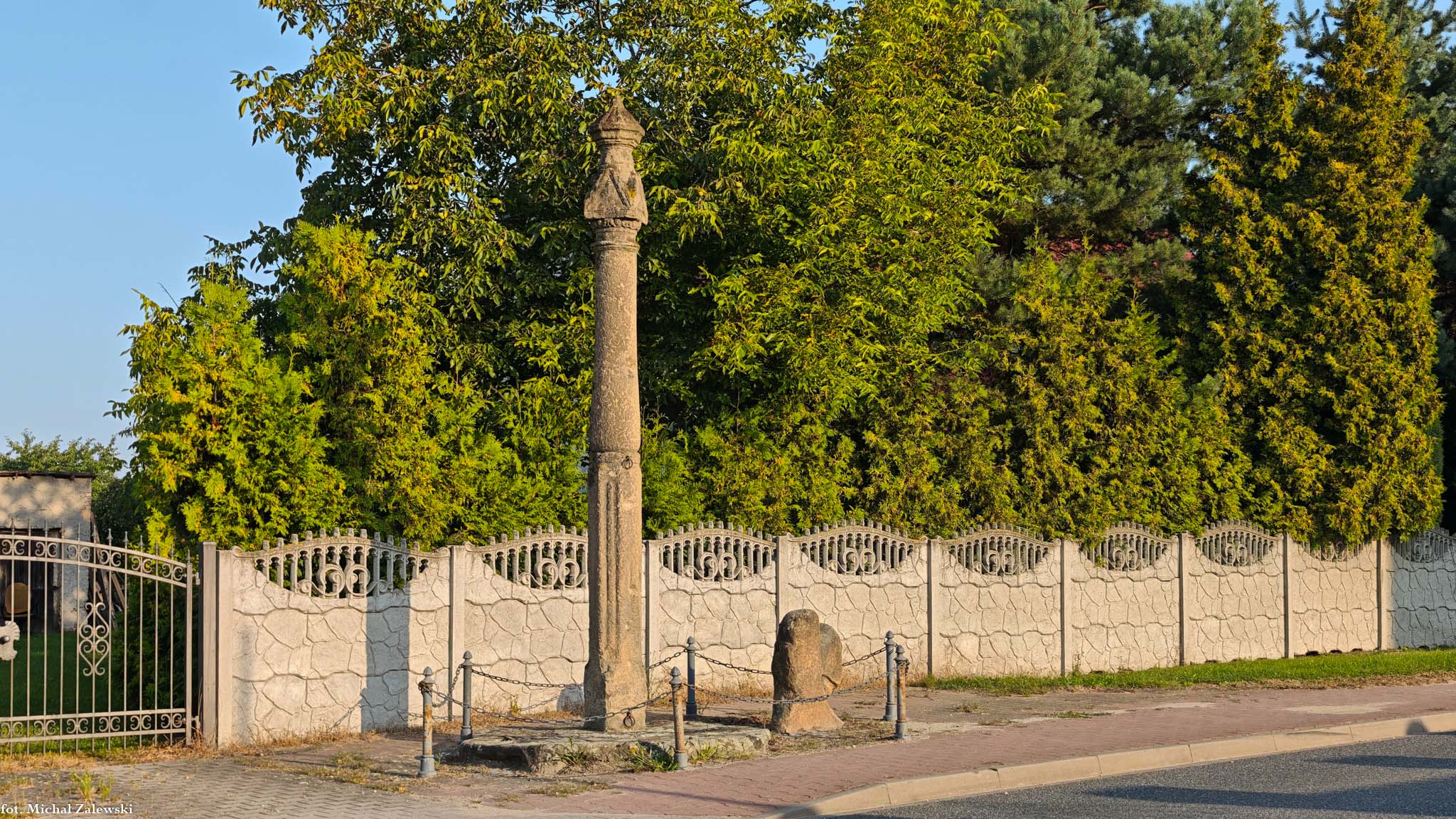 Granitowy krzyż bez jednego ramienia z dolną aureolą. Stoi po zachodniej stronie drogi do Sobótki (ul. Wrocławska) koło posesji 62, przy pręgierzu. 50°55'35.0"N 16°45'29.7"E.