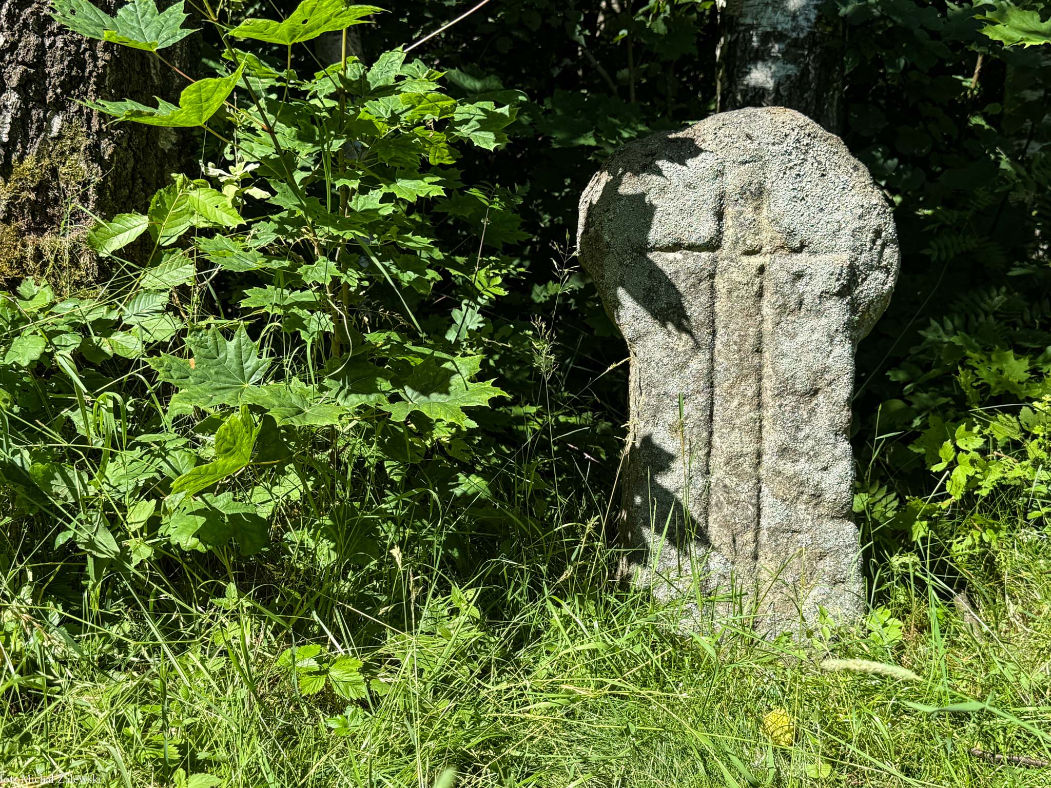 Krzyż z piaskowca przy gruntowej drodze ze Strachowic do Stójkowa Lądka-Zdroju. Położenie: 50°19'01.6"N 16°52'11.4"E.