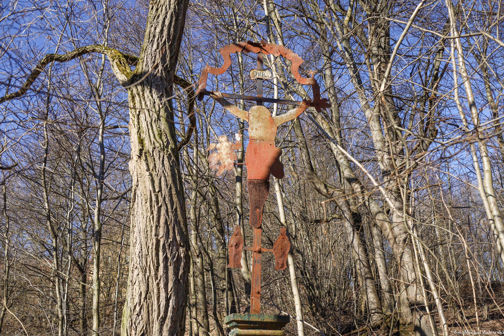 Wieszkowice, część wsi Pławna Górna (Ober Schmottseiffen) gm. Lubomierz, pow. lwówecki. Grupa Ukrzyżowania z blachy.