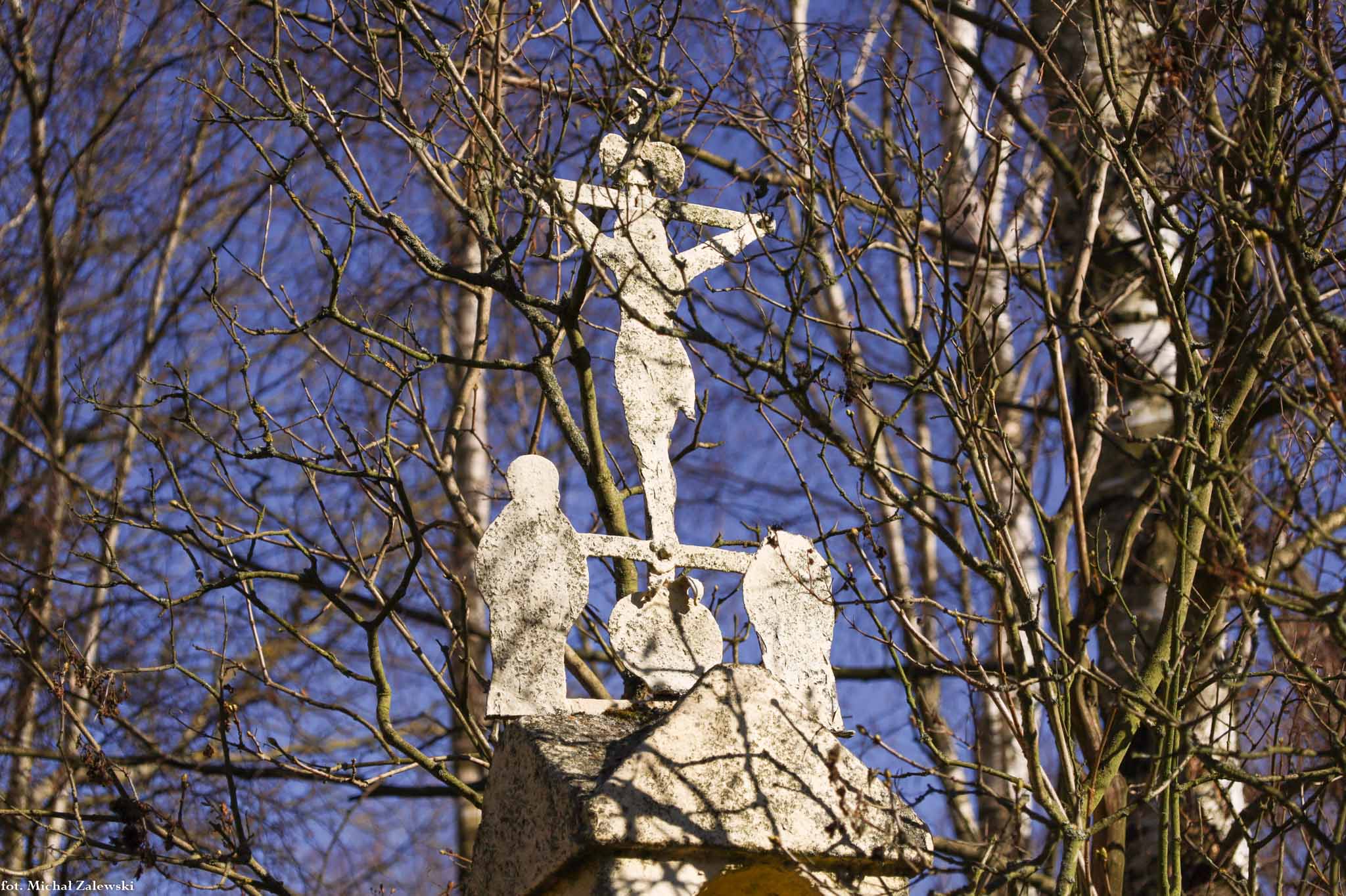 Kamienna kapliczka (XVIII w.?, w zwieńczeniu Grupa Ukrzyżowania z blachy. Z boku posesji nr 89.