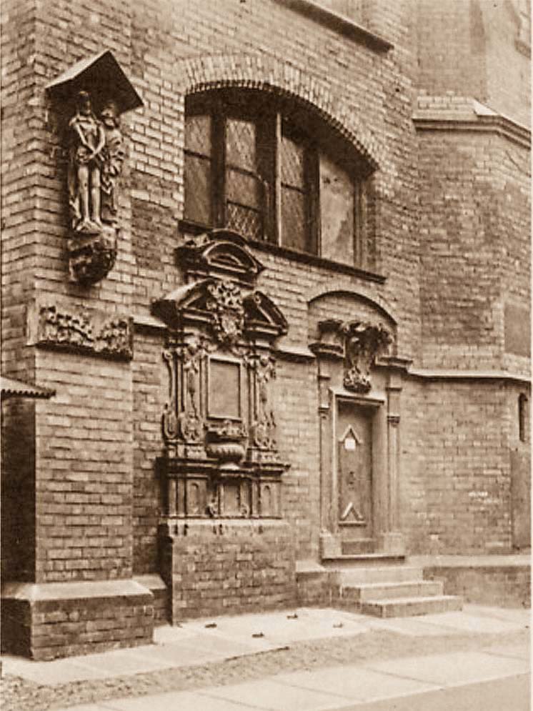 Wokół wejścia do zakrystii fary elżbietańskiej we Wrocławiu ok. 1911.