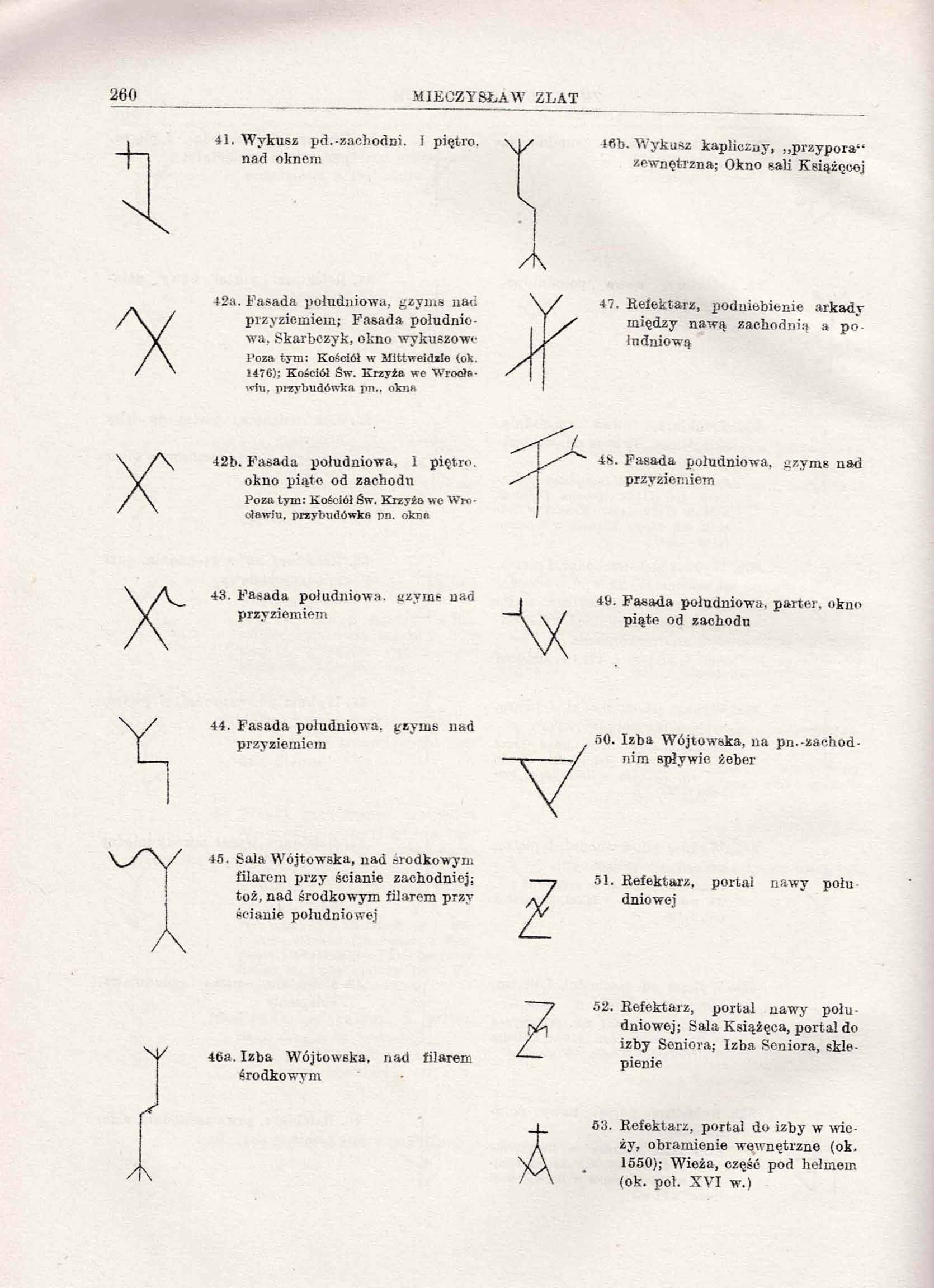 Znaki kamieniarskie, gmerki na wrocławskim ratuszu.