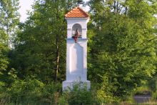 Słupowa kapliczka w typie latarni umarłych z Chrystusem Frasobliwym na Winiarach w Poznaniu.