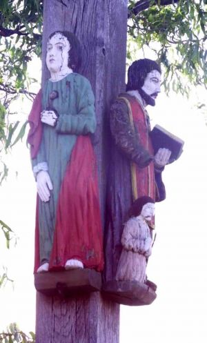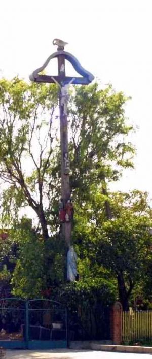 W tej podpleszewskiej wsi znajduje się jeden z wielofigurowych drewnianych krzyży autorstwa Pawła Brylińskiego. Jest on najdalej na północ położonym dziełem "bożego snycerza" z Masanowa, zdobiącego głównie teren dzisiejszego powiatu ostrowskiego. Krzyż datuje się na rok 1860[1][2][3][uwaga 1]. Stoi w części wsi nazywanej Baranów (kiedyś samodzielna wieś o tej nazwie), po południowej stronie skrzyżowania ulic Baranów, Bolesława Chrobrego i 24 stycznia.