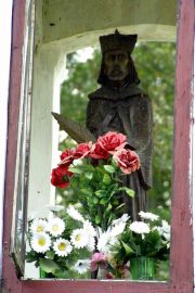 Ludowa rzeźba św. Jana Nepomucena jest raczej z późniejszego okresu. Być może została wstawiona razem z pracami przy oszkleniu kapliczki.
