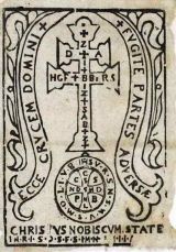 [[Plik:Karawaka drzeworyt na papierze.jpeg|thumb|160px|3. Karawaka i krzyż św. Benedykta. Amulet, drzeworyt na papierze, Polska, XIX w.]] | |||
