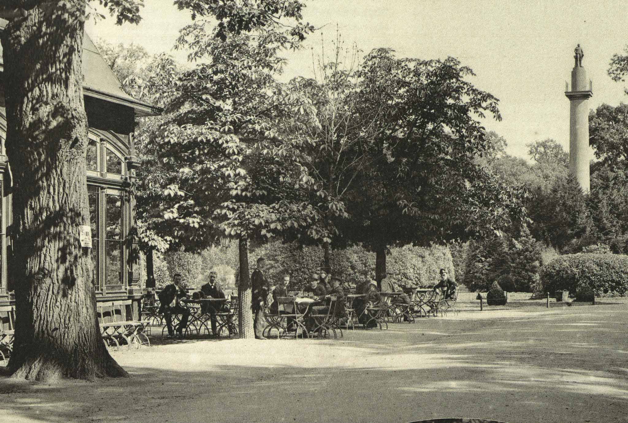 Park Szczytnicki (Scheitniger Park, Fürsten Garten) restauracja Schweizerei. Widać kolumnę pamiątkową ku czci Fryderyka Wilhelma II. W 1797 po śmierci króla wzniesiono w tym miejscu kolumnę drewniano-gipsową ku jego czci. Ta kolumna spłonęła w 1805 i w 1806 została zastąpiona obecną, murowaną kolumną (kamienno-ceglaną). W 2016 kolumnę odrestaurowano. Posąg króla Prus Fryderyka Wilhelma II usunięty po 1945. Podczas remontu odnaleziono fragment ręki zniszczonego posągu króla, który był wykonany z piaskowca i miał 2,4 m wysokości.