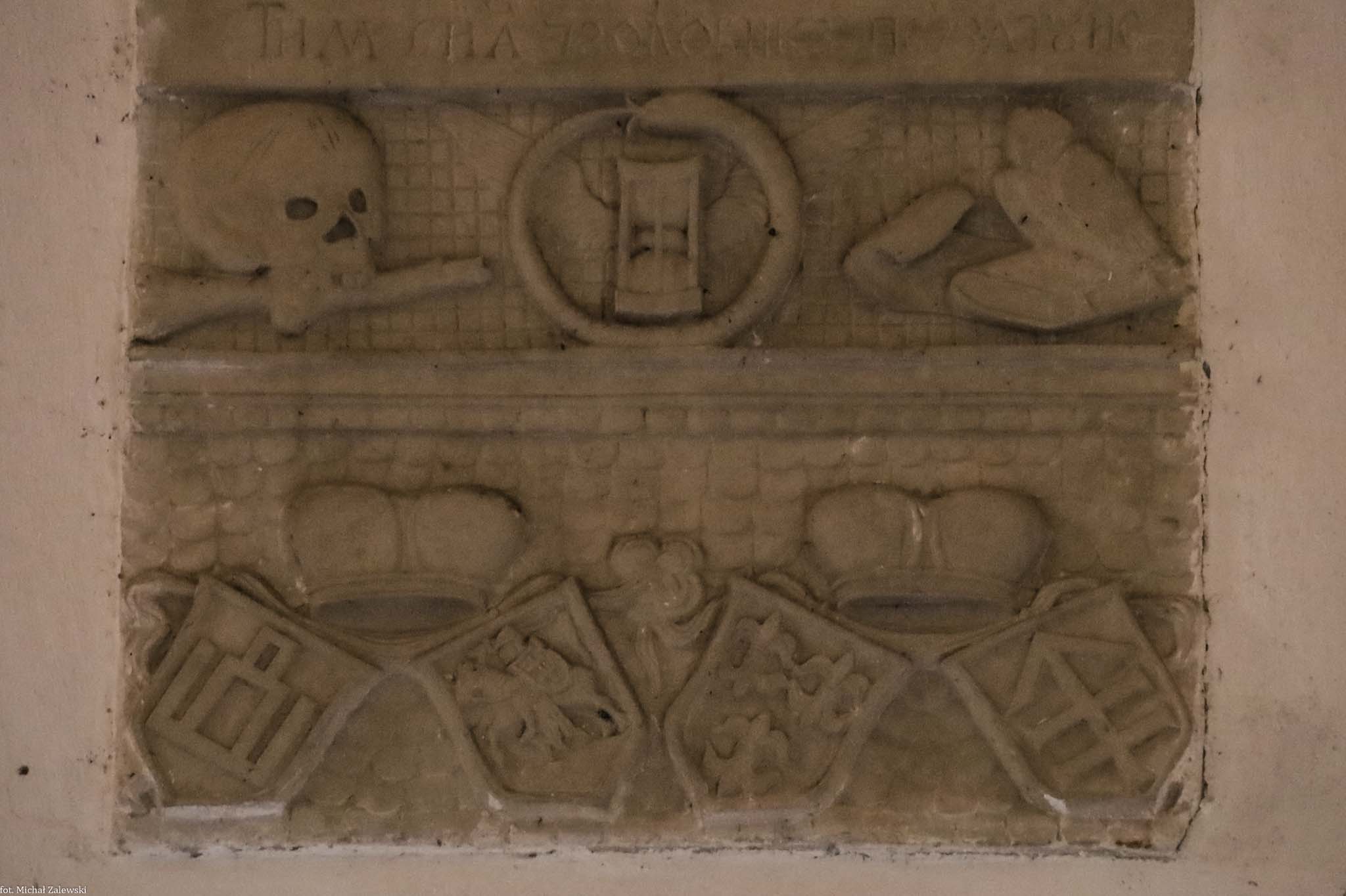 Nagrobek Jana Sapiehy wojewody podlaskiego założyciela Kodnia, zmarłego 1520 r., w starożytnej cerkwi zamkowej w Kodniu. Fot. 2024. Fragment | Nagrobek Jana Sapiehy, wojewody podlaskiego, założyciela Kodnia, zmarłego 1520 r., w starożytnej cerkwi zamkowej w Kodniu. Fot. 2024. Fragment. | ||