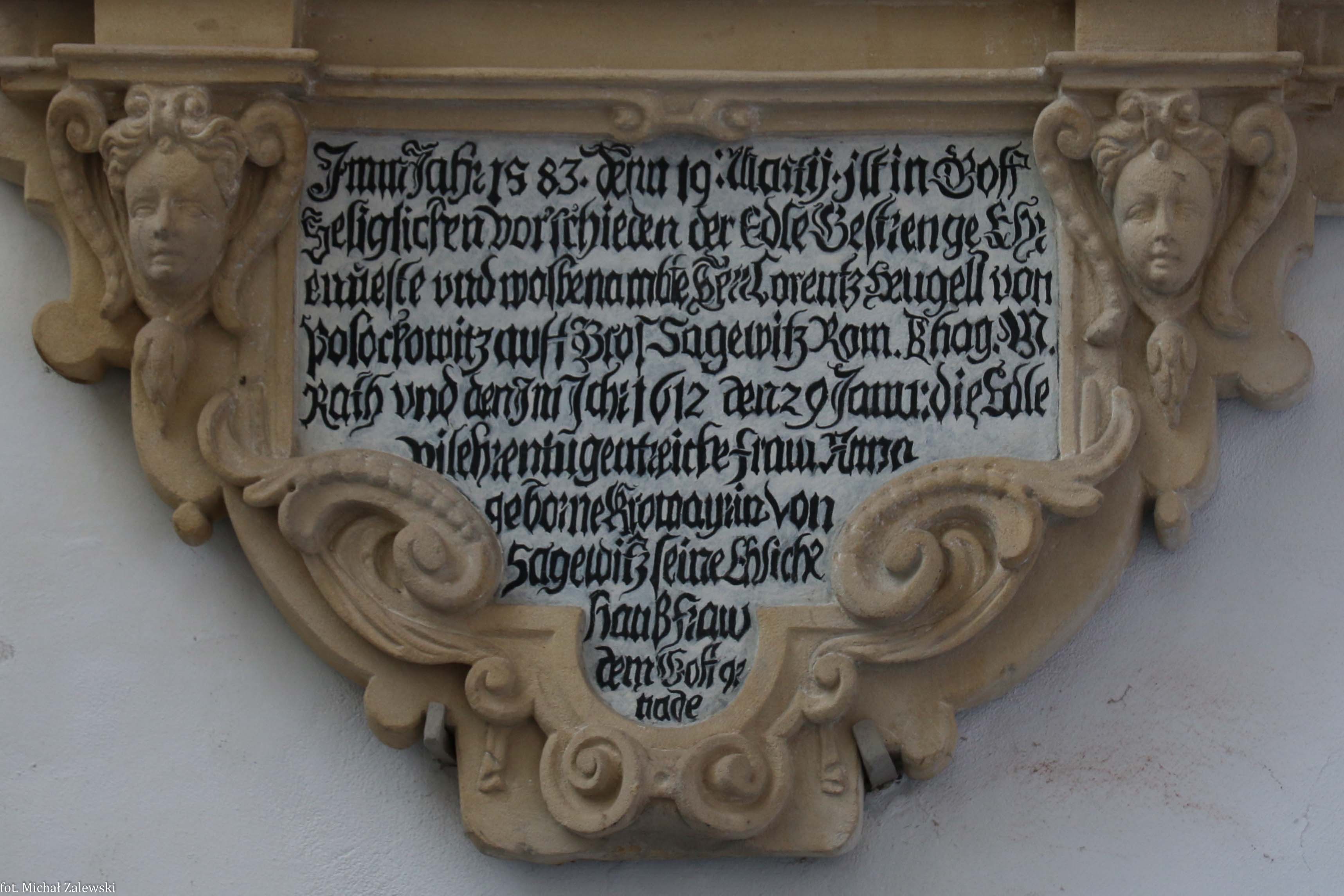 Epitafium Lonrenza Heugela zm. w 1583 r. i jego żony Anny von Kromayer zm. 1612. Zachodnia ściana kaplicy rodziny Heugel.