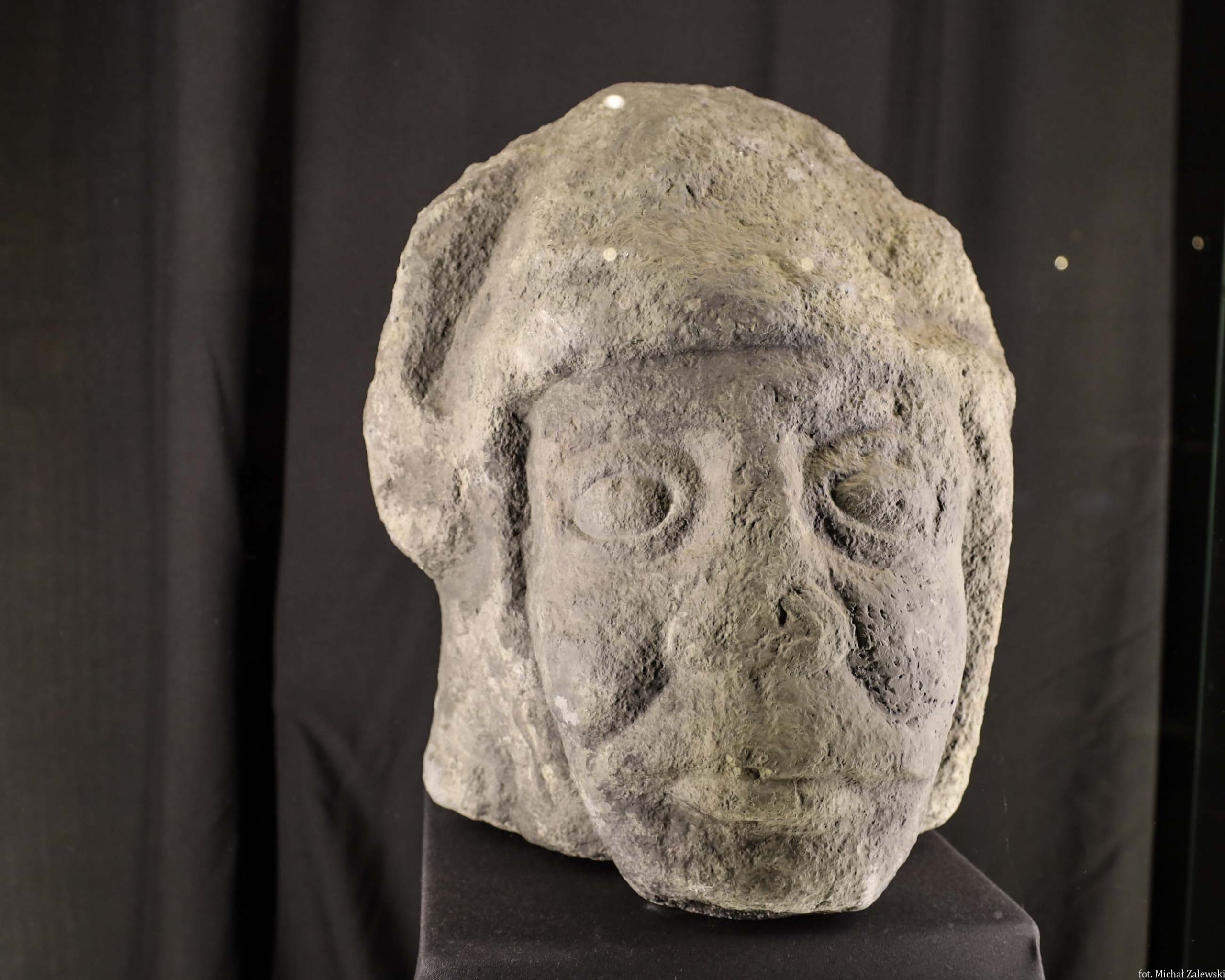 Głowa - rzeźba kamienna, 2. poł. XII w. (kopia). Muzeum Archeologiczne we Wrocławiu.