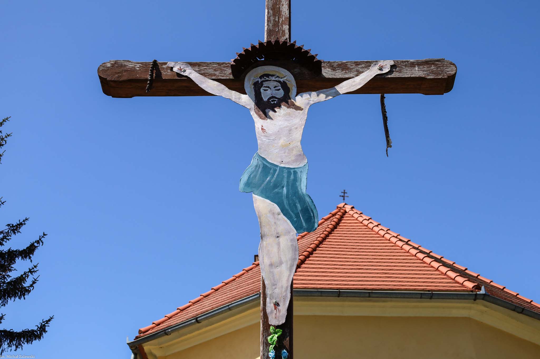 Piekary (Beckern) gm. Udanin, pow. średzki, woj. dolnośląskie, krzyż przydrożny z Chrystusem z blachy (fot. 2024).