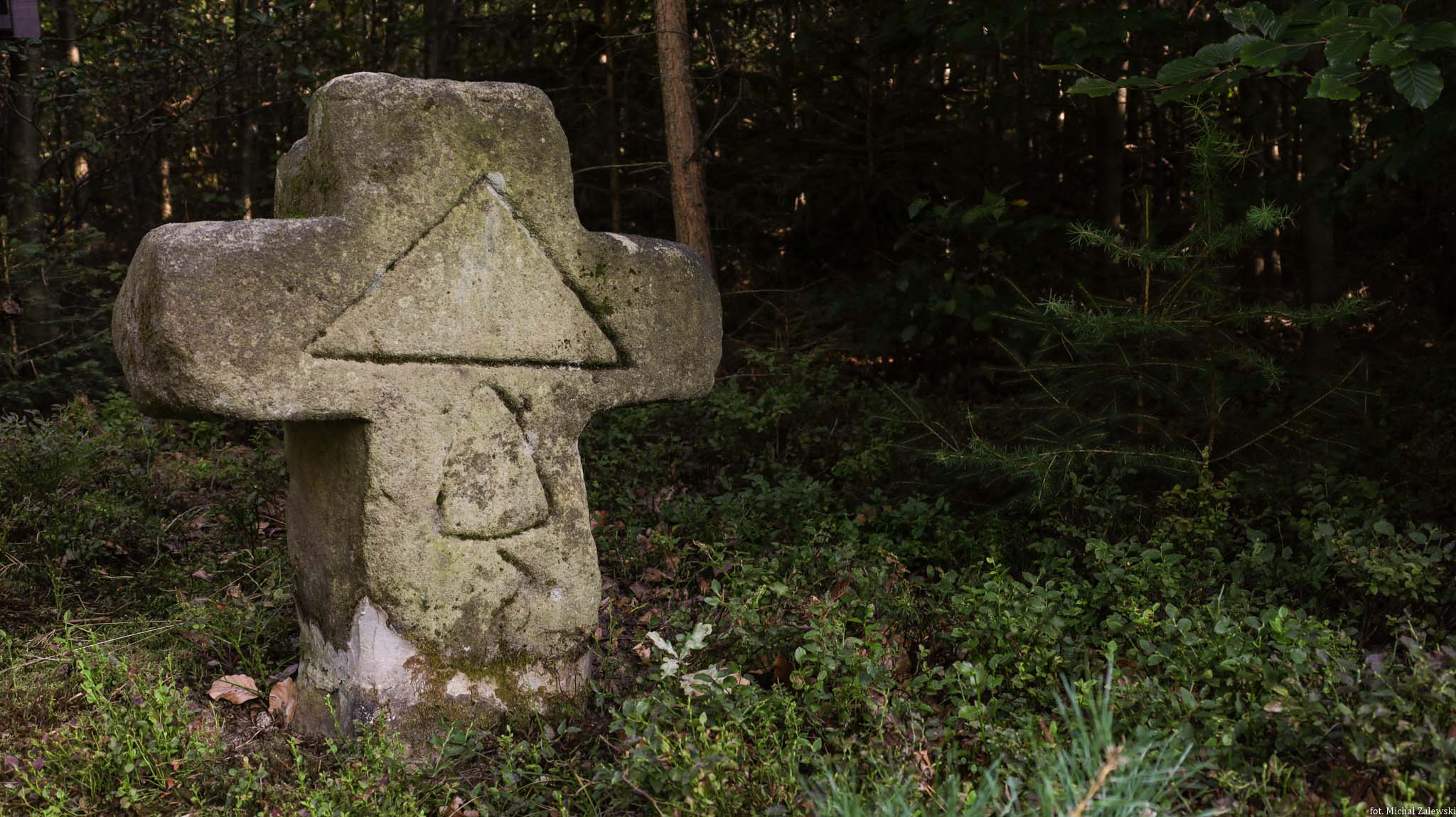 Szlakiem kamiennych krzyży w Czaplach, krzyż nr 4. Złotoryjski Las.
