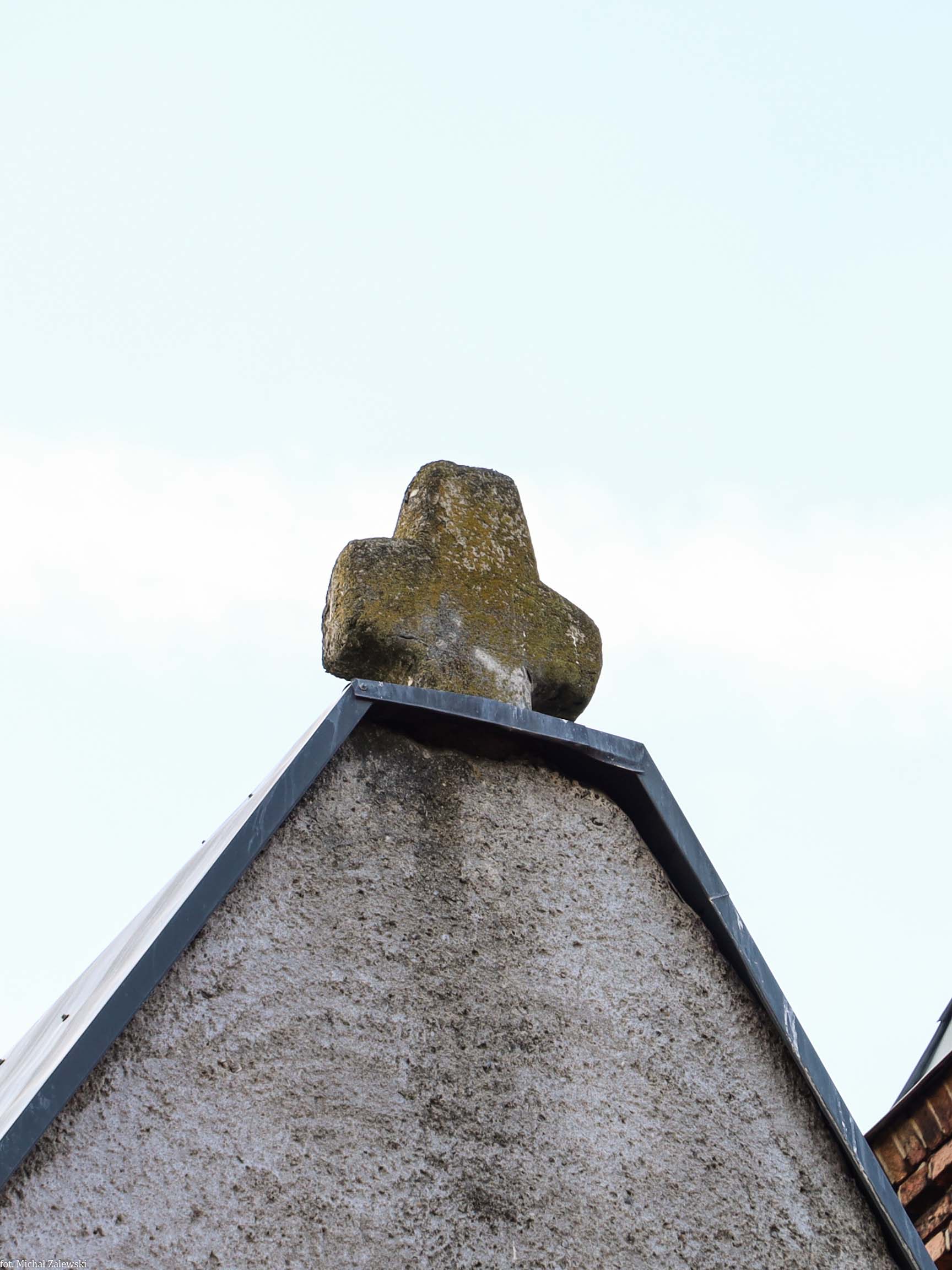 Dwa kamienne krzyże w szczycie kościoła Matki Bożej Różańcowej. GPS N 51° 41’ 48 E 15° 05’ 59