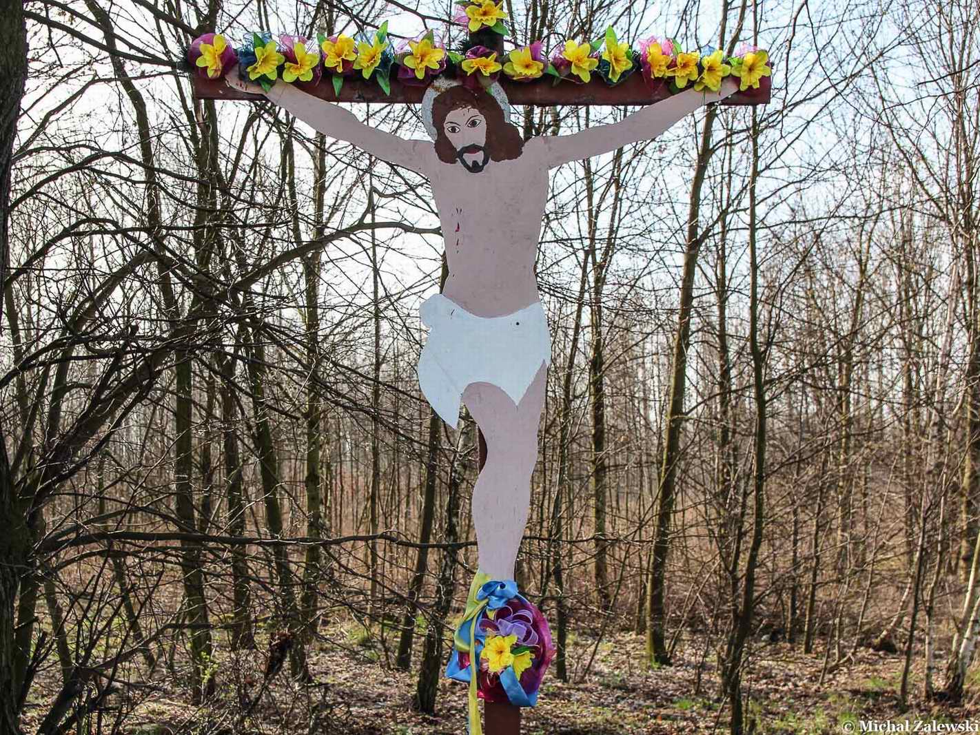 Rapocin, wcześniej Rabsen, gm. Głogów, powiat głogowski, krzyż z Chrystusem z blachy, fot. 2017.