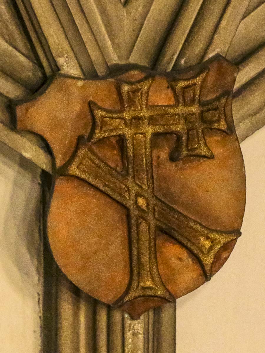 Herb (gmerk) ławnika wrocławskiego Mathiasa Foyta. Zwornik heraldyczny sklepienia gwiaździstego z lat 1484−1485 w Izbie Seniora Rady wrocławskiego Ratusza.