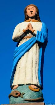 Rzeźba jest bardzo podobna do umieszczonej na cokole figury Maryi Niepokalanie Poczętej przy skrzyżowaniu ul. Długosza i św. Kingi pochodzącej z 1811 r. Obie rzeźby przedstawiają Immaculatę w ten sam sposób łącznie z sierpem księżyca na kuli ziemskiej. Pochodzą z tego samego okresu, nie są jednak dziełem jednego twórcy. Maria na kolumnie jest przedstawiona bardziej frontalnie i statycznie. Szaty są zarysowane mocno schematycznie. Rzeźba wyszła spod ręki mniej sprawnego kamieniarza, który być może wzorował się na Marii z ulicy Długosza. Jeszcze jedna ludowa rzeźba Maryi Niepokalanie Poczętej w tym samym typie, ale późniejsza bo z 1868 r., znajduje się na cokole na końcu kamiennych schodów prowadzących na wzgórze staromiejskie do kościoła pw. św. Jana Chrzciciela.