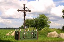 Drewniany krzyż z XVII-wieczną rzeźbą Chrystusa we wschodniej części wsi przy skrzyżowaniu szosy do Szamotuł (Ostroroga) z lokalną drogą do Ordzina. Na krzyżu umieszczono metalową tabliczkę z wygrawerowanymi datami: ustawienia - 1945 i remontów - 1983, 1995, 1999. Rzeźba Ukrzyżowanego była odnawiana w 1988[6].
