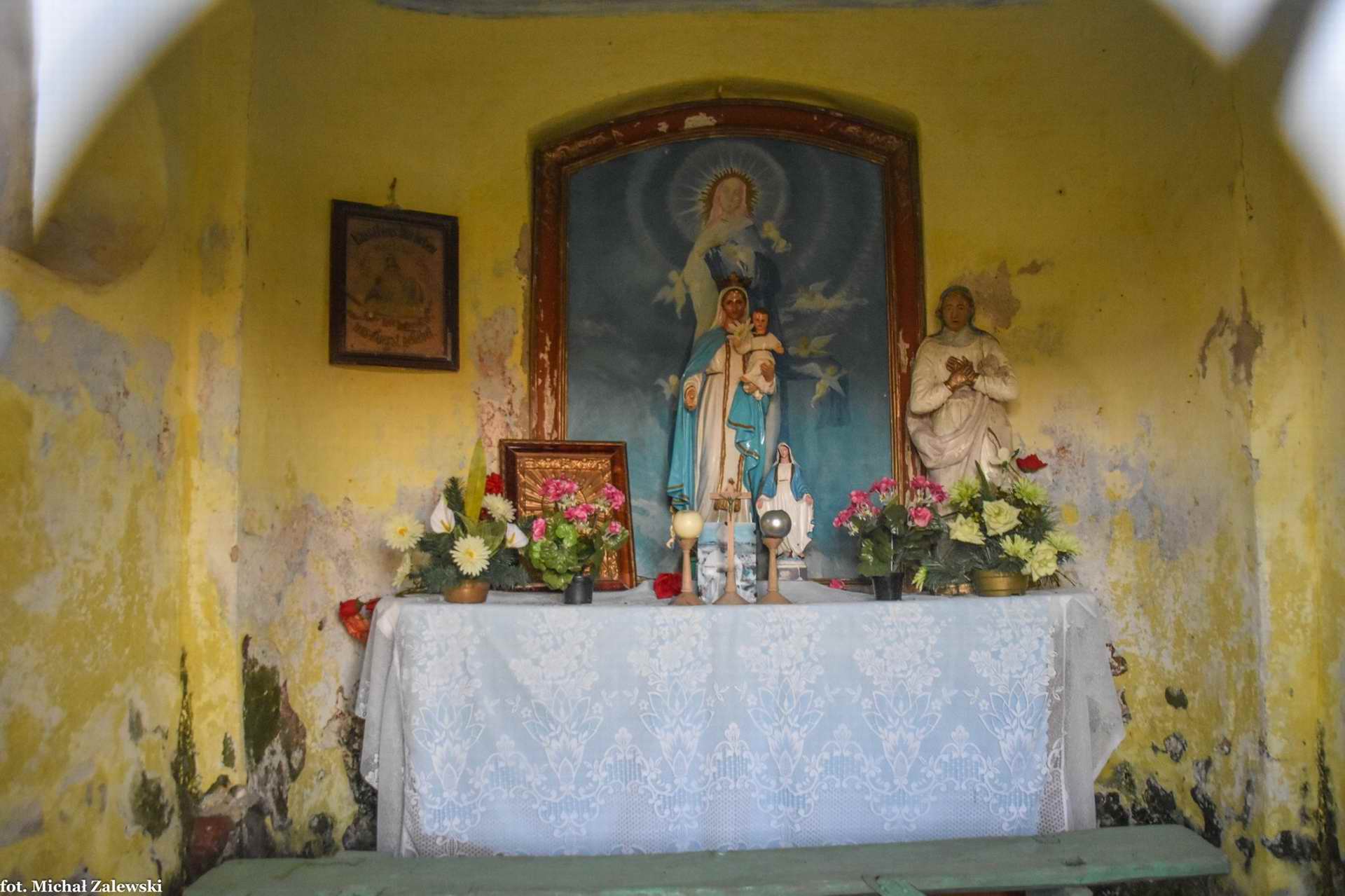 Wnętrze kapliczki przydrożnej w Braszowicach (Baumgarten) gm. Ząbkowice Śląskie, pow. ząbkowicki (fot. 2019).
