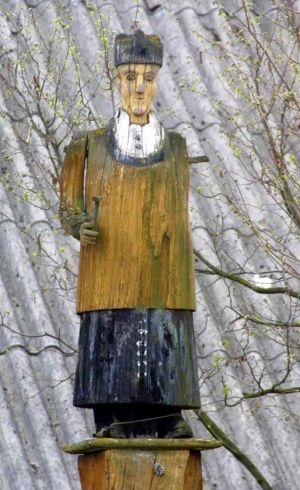 We wsi znajduje się drewniana figura św. Jana Nepomucena na drewnianym słupie. Stoi na terenie posesji, jest więc prywatną fundacją, mającą zapewnić opiekę i pomyślność w domu i gospodarstwie. Rzeźba jest mocno uszkodzona. Odpadła jej lewa ręka. Nie ma też krzyża, który był prawdopodobnie trzymany w prawej (stan 2001).